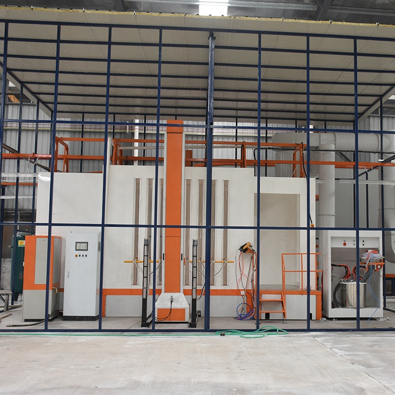 Wall panel made of 1.2mm thick SUS304 stainless steel,with spray nozzles,cleaning time is 2min.1 sets of 7.5kw centrifugal vertical pipe pumps for spraying.Water tank inside panel is made of SUS304 2.5mm thick stainless steel,outside is 0.8mm thick SUS304stainless steel,inner is 40mm thick rock wool for keep heat.Each stage have 1 set of 3kw air exhaust fan on top